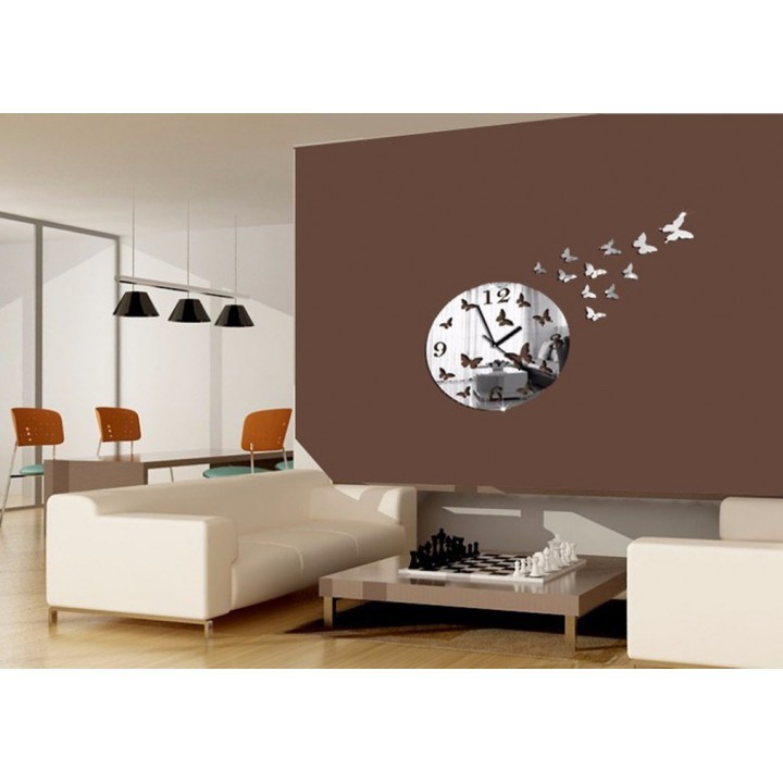 Đồng Hồ Dán Tường Trang Trí Hình Bướm 3D Độc Đáo– Chất liệu: Kim loại
