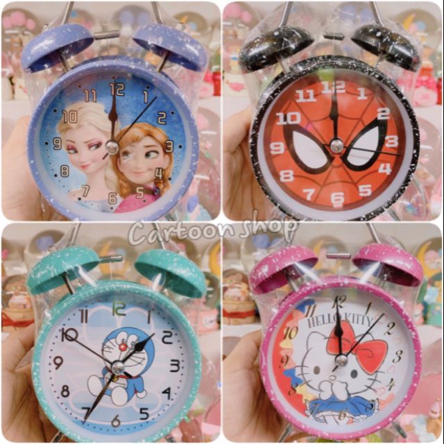 Giới thiệu Đồng hồ để bàn báo thức 15×9.5(cm) âm thanh lớn Elsa/ Spiderman/ Doremon/ Hellokitty
