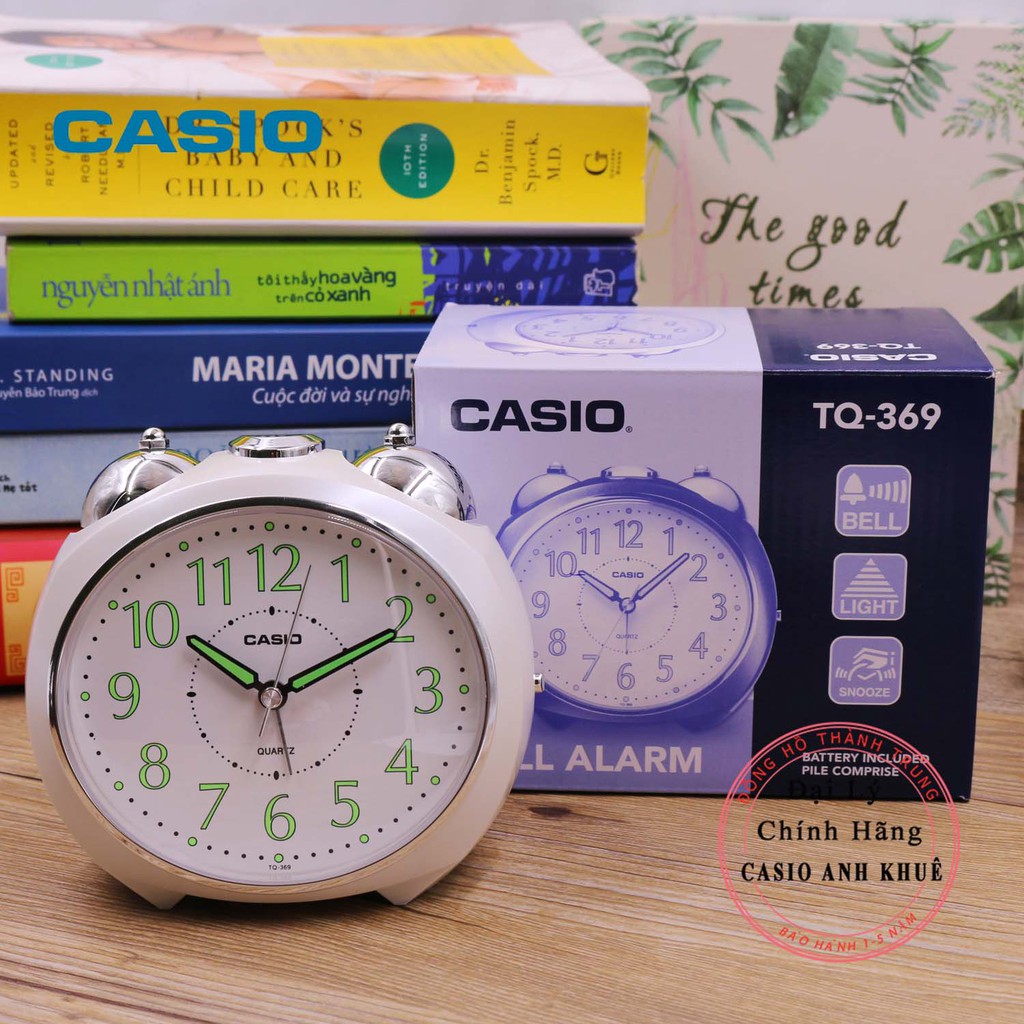 Đồng hồ để bàn Casio TQ-369-7DF có đèn chuông báo thức, dạ quang ( 11.6×13×9 cm )