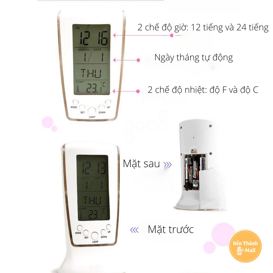 - Sản phẩm với các chức năng: đồng hồ xem ngày và giờ, báo thức, đo nhiệt độ, lịch