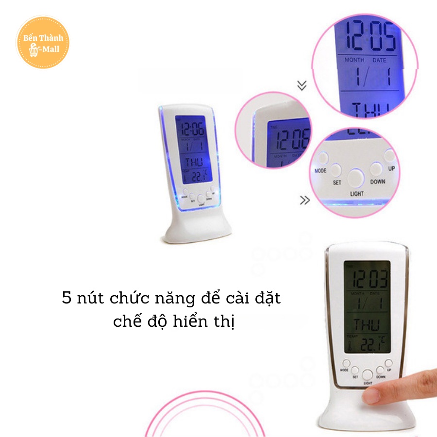 - Có 5 phím bấm, có đèn LED - đo nhiệt độ xem ngày giờ. Có màn hình hiển thị.