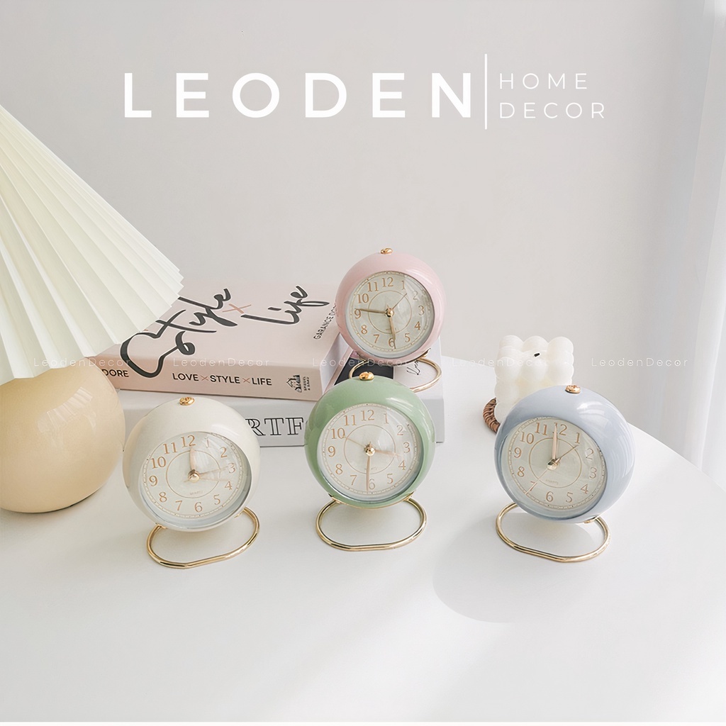 Đồng hồ để bàn decor hình tròn nhiều màu pastel phong cách Hàn Quốc , đồng hồ báo thức để bàn có đèn vintage - LEODEN Decor✅ CAM KẾT SẢN PHẨM: