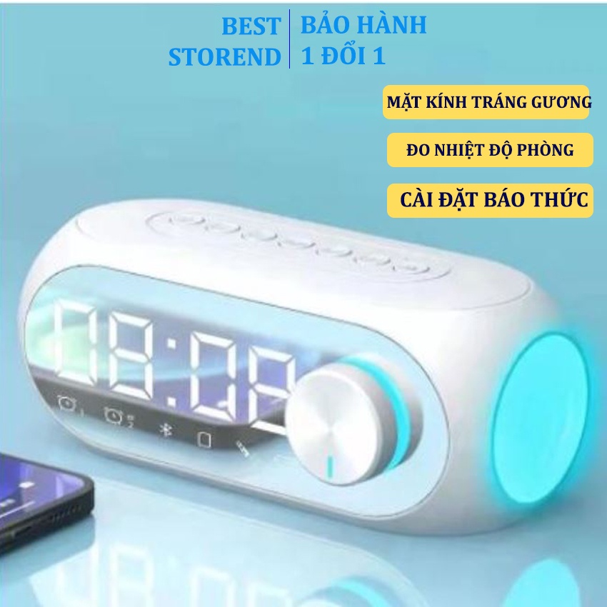 Đồng hồ để bàn decor S8, loa bluetooth không dây mini có báo thức làm đèn ngủ đo nhiệt độ phòng