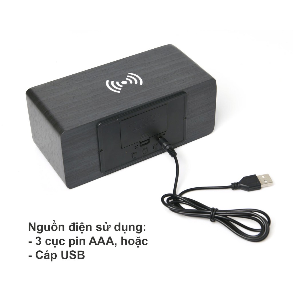 Đồng hồ để bàn đèn Led + loa bluetooth + sạc điện thoại không dây