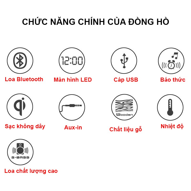 1.Thông tin chung của sản phẩm:+Đồng hồ để bàn kèm loa bluetooth và sạc không dây.