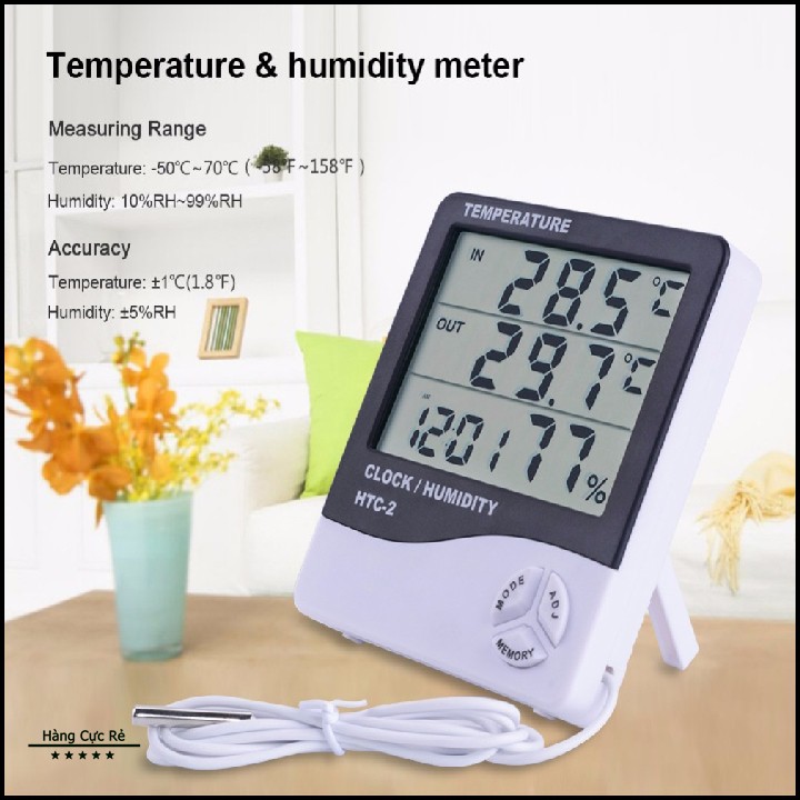 ✔️ Đồng Hồ Đo Nhiệt Độ - Độ Ẩm HTC1 để theo dõi thời gian và nhiệt độ, độ ẩm của môi trường, thích hợp để trang trí trong nhà, bàn làm việc, trường học, phòng thí nghiệm…