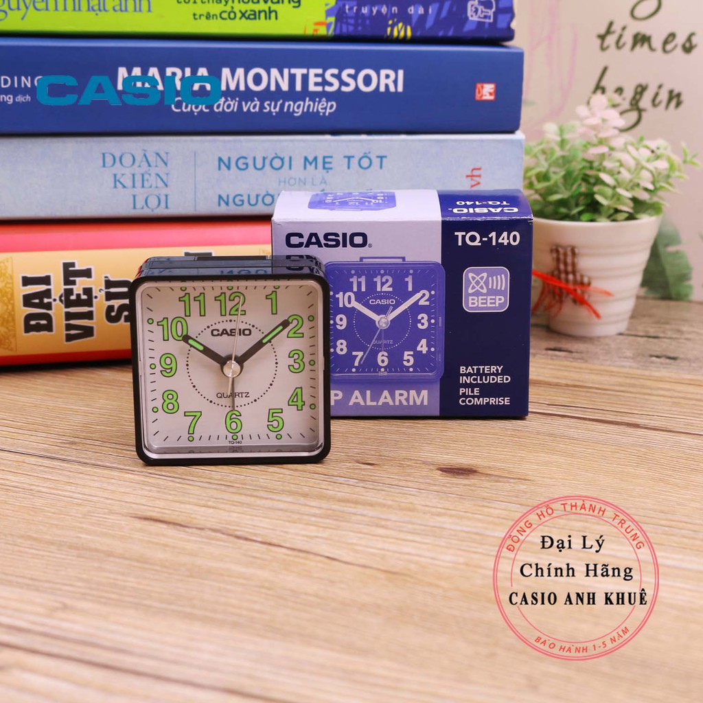 Đồng hồ để bàn - du lịch Casio TQ-140-1BDF có báo thức, dạ quang ( 5.7 x 5.7 cm)