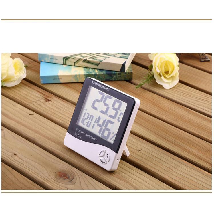 Đồng Hồ Để Bàn Hiển Thị Giờ - Đo Độ Ẩm Và NHIỆT ĐỘ HTC - 01 - Màn Hình Điện Tử LCD (Tặng 1 Pin AAA)