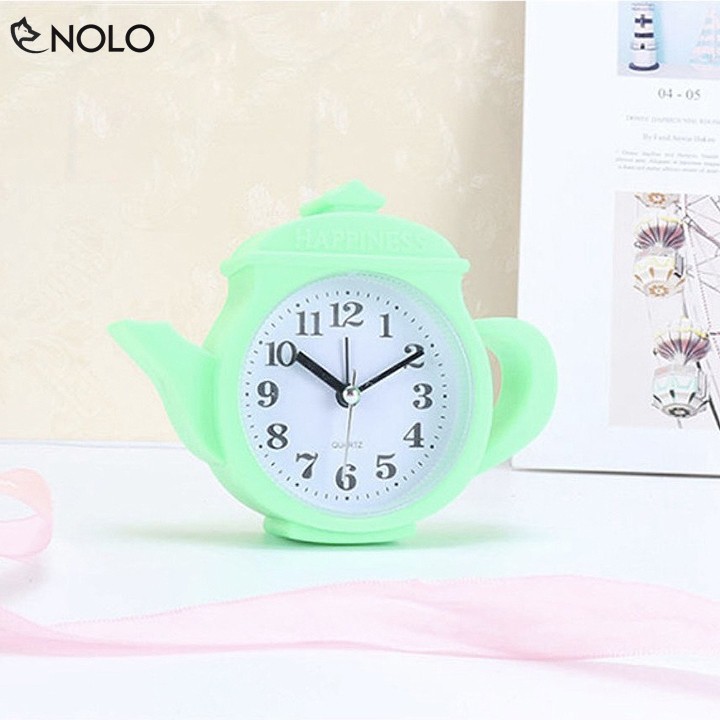 Đồng Hồ Để Bàn Hình Ấm Trà Trang Trí Phòng Ngủ, Bàn Làm Việc Dễ Thương Dùng 1 Viên Pin AA