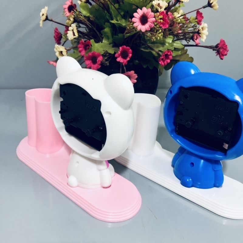 Đồng Hồ Để Bàn Họa Tiết Hoạt Hình Dễ Thương Cho Bé Có Ngăn Đựng Bút, Tặng Kèm Pin 2A