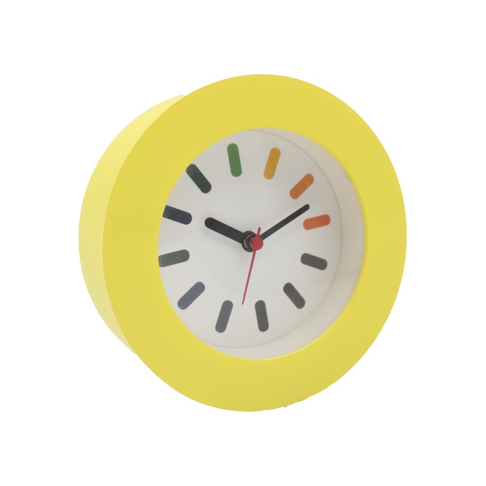 - Đồng hồ kim trôi Jenny thiết kế viền nhựa dày màu vàng tươi kết hợp các mốc chỉ định thời gian nhiều vạch màu sắc sinh động không chỉ đáp ứng công năng theo dõi thời gian mà còn ứng dụng làm vật trang trí, tạo điểm nhấn cho không gian như văn phòng làm việc, phòng ngủ, trang trí phòng khách, góc học tập hoặc làm quà tặng cho bạn bè, người thân