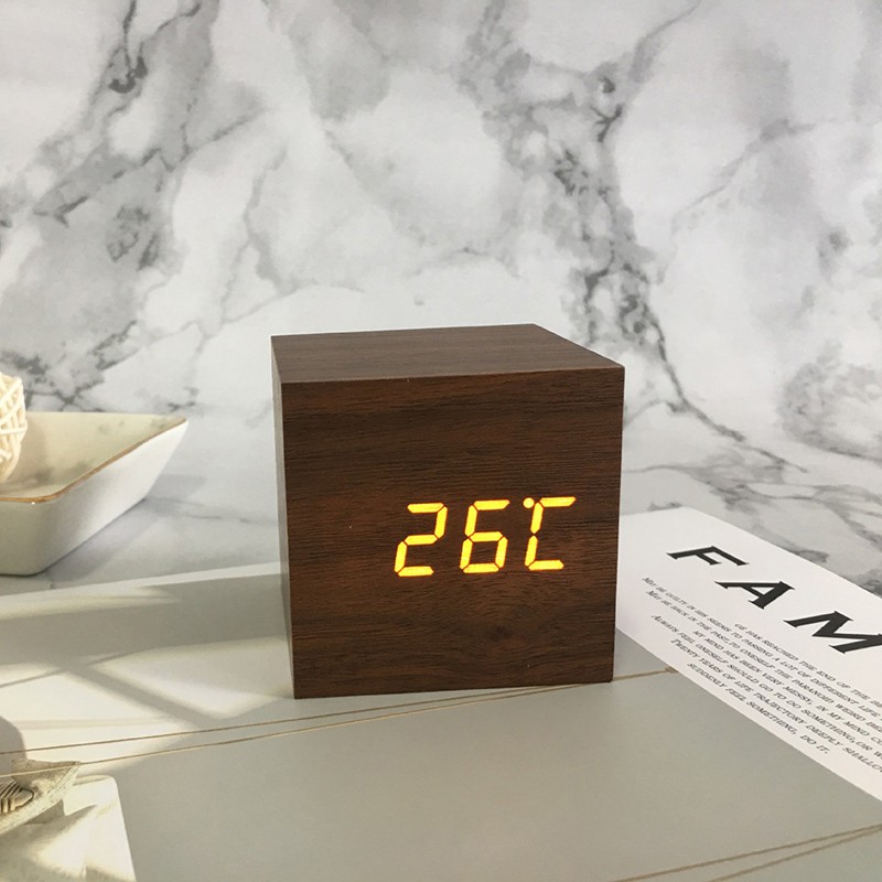 Nhà cửa & Đời sống > Nội thất > Bàn || [Mã LIFEMALL253 giảm 100K đơn 250K] Đồng hồ để bàn LED giả gỗ MONSKY HASSA hình vuông để bàn tiện dụng đa chức năng.Còn hàng