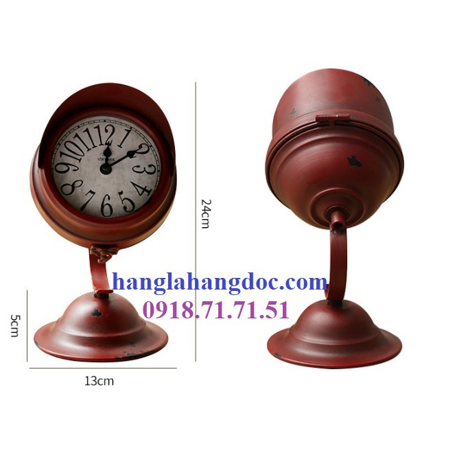 Chiếc đồng hồ để bàn Vintage với phong cả giả cổ sang trọng không chỉ giúp bạn xem giờ mà còn là vật trang trí xinh xắn trong nhà – món quà ý nghĩa cho những tín đồ yêu thích những món đồ độc đáo & lạ mắtSản phẩm được phết những vệt sơn không đều màu, đôi chỗ như bị trầy xước lớp sơn, tạo dấu ấn thời gian, cho ta cảm giác tuổi thọ của chúng đã có từ rất lâu đời. Màu sắc trầm buồn của chúng thích hợp khi đặt cạnh các vật dụng bằng gỗ, sắt trong các gian phòng mang phong cách cổ xưa