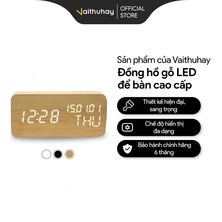 Đồng Hồ Để Bàn Vaithuhay Đèn Led Cao Cấp Bằng Gỗ