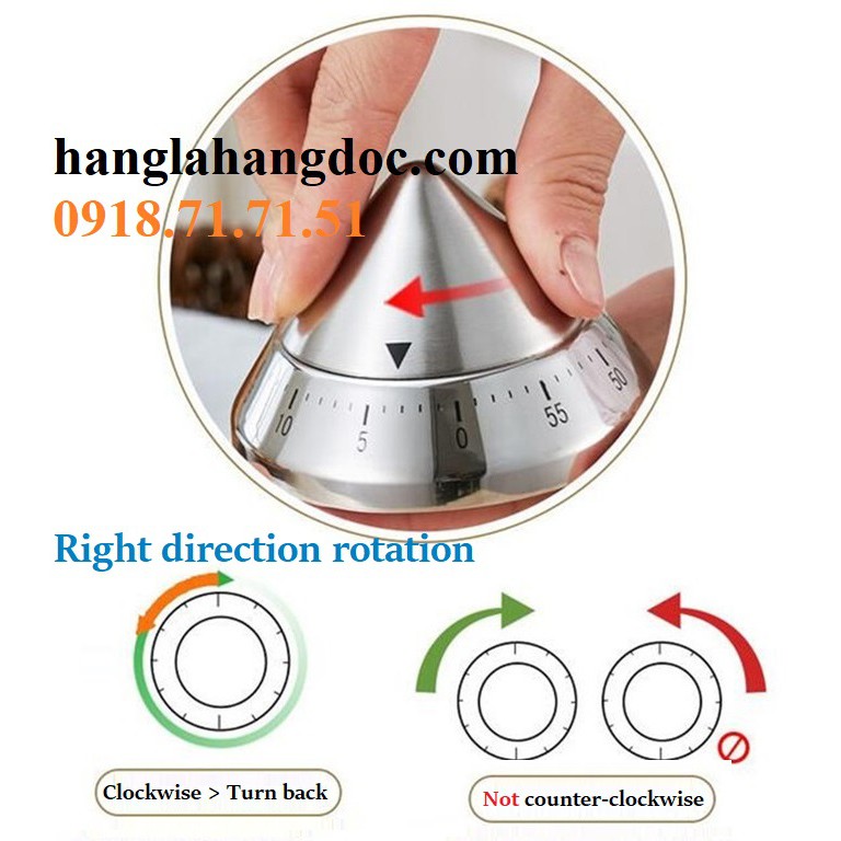 Cách sử dụng đơn giản: Chỉ có xoay & xoay - Đầu tiên bạn xoay một vòng theo chiều kim đồng hồ về số 59 (lên dây cót), sau đó chỉ việc vặn ngược lại đến thời gian mà bạn mong muốn. Việc còn lại là cứ để đồng hồ lo, bạn có thể yên tâm để nghỉ ngơi hoặc làm việc khác thôi!!!