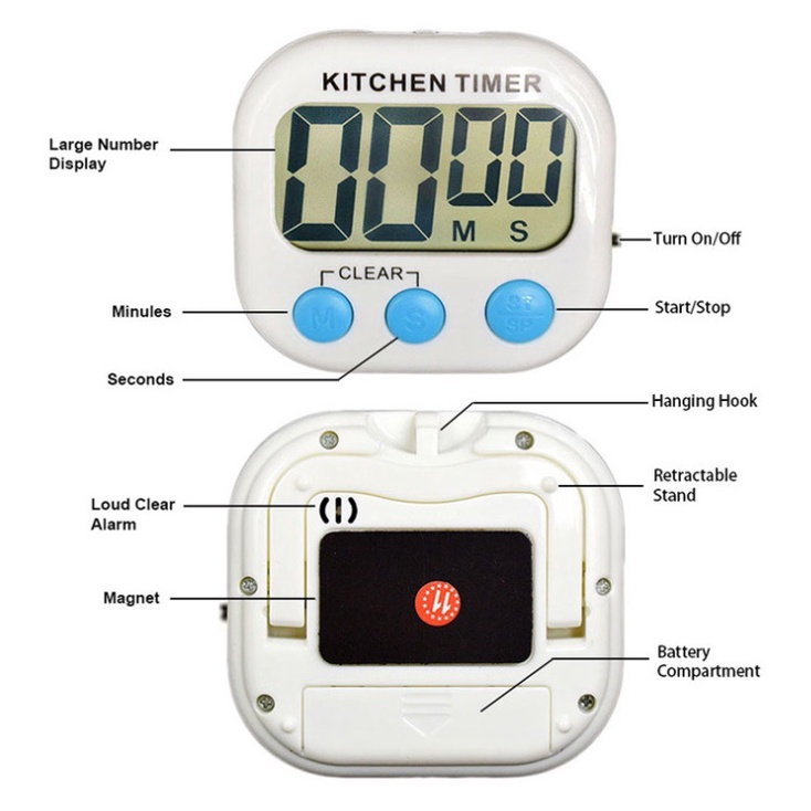Thiết kế nhỏ gọn & sử dụng đơn giản (3 nút bấm); đồng hồ hẹn giờ nấu ăn bỏ túi giúp các bạn nội trợ có thể ấn định thời gian nhắc nhở khi kho thịt, hầm xương, nấu lẩu... & thoải mái làm việc khác mà không bao giờ bị quên