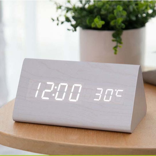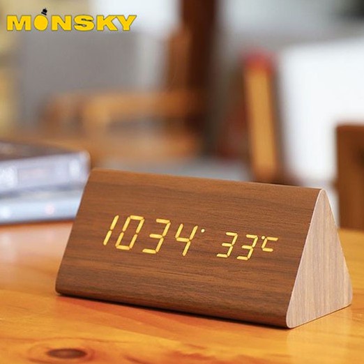Nhà cửa & Đời sống > Trang trí nhà cửa > Đồng hồ || Đồng hồ đèn LED giả gỗ MONSKY FAKEN để bàn hình tam giác tiện dụng, đa chức năng trang trí phòng hiện đại.Còn hàng