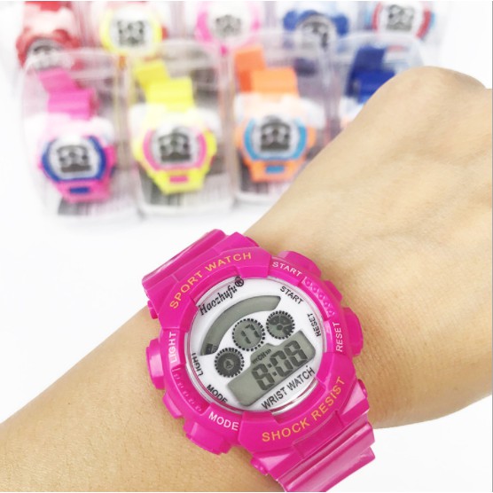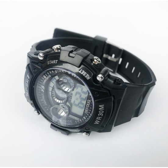 Đồng hồ thể thao thời trang sáng tạo, thời gian, tuần, lịch, chronograph và nhiều chức năng khác, đèn LED thay đổi nhiều màu sắc. Thiết kế chống thấm thông thường hàng ngày.Đồng hồ này có hai kích cỡ: Mẫu dây đen có đường kính mặt số là 4,3 cm và mẫu dây đeo màu có đường kính mặt số là 3,7 cm (bao gồm cả viền). Có nhiều màu sắc khác nhau.