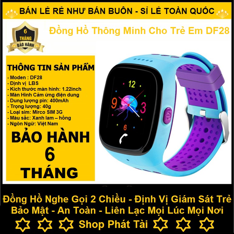 Đồng Hồ DF28 - Đồng Hồ Định Vị Trẻ Em Nghe Gọi 2 Chiều - Chống Nước Ip67 ( Phiên Bản Tiếng Việt ) - Có Bán Lẻ Dây Sạc
