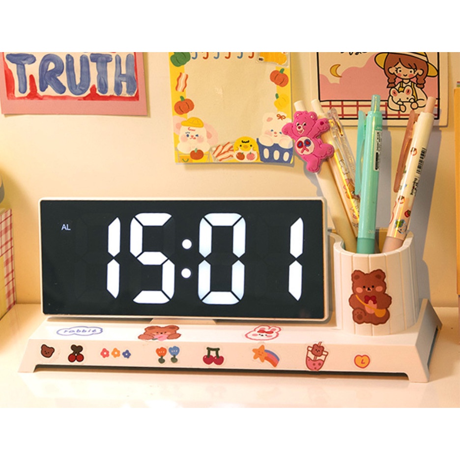 ĐỒNG HỒ ĐIỆN TỬ, CÓ BẢO NGÀY GIỜ,NHIỆT ĐỘ, THIẾT KẾ ĐỘC ĐÁO KÈM KHAY ĐỰNG BÚT