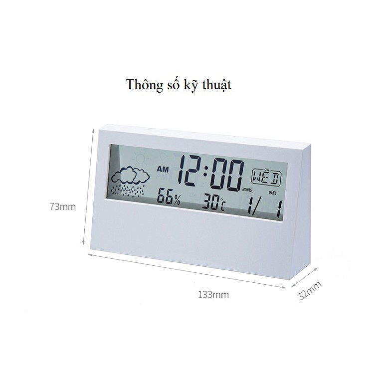 Đồng hồ điện tử để bàn có đèn là sản phẩm hữu ích không chỉ để xem giờ hay báo thức như các loại đồng hồ thông thường mà nó còn có thêm các chức năng đặc biệt như xem lịch, nhiệt độ, độ ẩm và thời tiết. Thiết kế trẻ trung, ấn tượng và sử dụng nhựa cao cấp bền đẹp. Chiếc đồng hồ này còn là vật dụng trang trí mang tính thẩm mỹ cao cho phòng làm việc, phòng học , căn phòng ngủ của bạn hoặc có thể tặng cho bạn bè.THÔNG SỐ KỸ THUẬT: