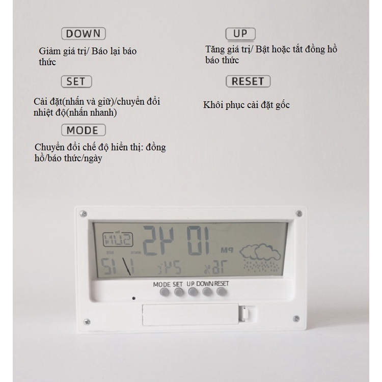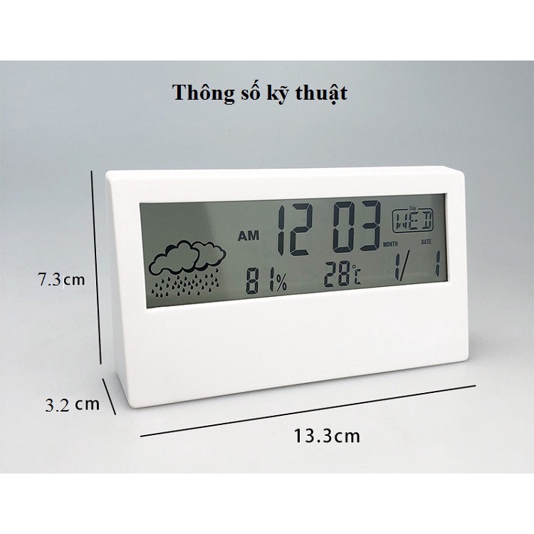 Đồng hồ điện tử để bàn (màn hình trong suốt) sử dụng chất liệu nhưa ABS cao cấp an toàn và thân thiện với môi trường. Thiết kế nhỏ gọn, thông minh, kết cấu đa chức năng như thời gian, lịch, đo nhiệt độ độ ẩm, thời tiết. Giúp bạn dễ dàng đặt ở bất kỳ đâu như trên bàn làm việc, phòng ngủ, bàn học, phòng khách, dễ dàng đem theo trong các chuyến du lịch, dã ngoại...THÔNG SỐ KỸ THUẬT: