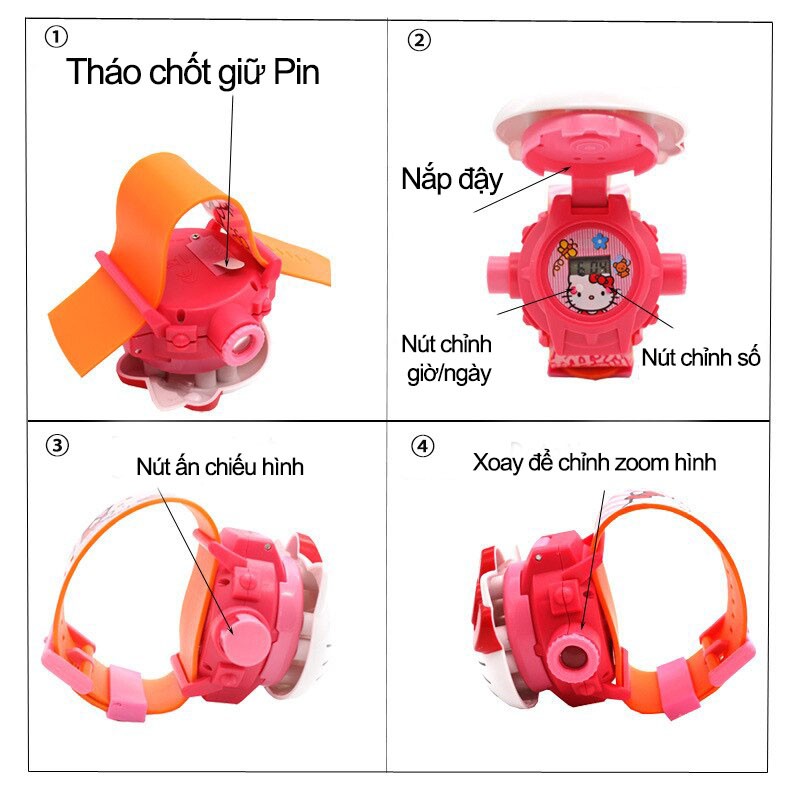 Giới thiệu Đồng hồ điện tử đeo tay chiếu 24 hình 3D Projector Watch cô chuột Minnie Mouse