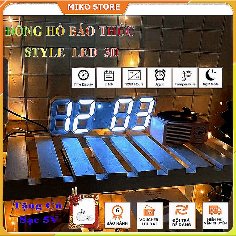 Đồng Hồ LED 3D Kỹ Thuật Số Thông Minh, Đồng Hồ Báo Thức Để Bàn, Treo Tường, Làm Quà Tặng“ Tặng củ sạc 5V khi mua đồng hồ”