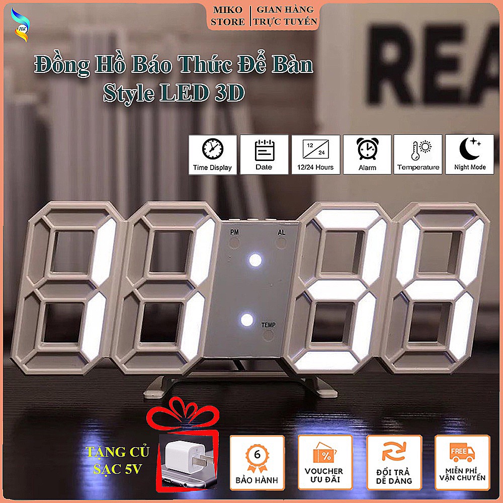 Nhà cửa & Đời sống > Trang trí nhà cửa > Đồng hồ || Đồng Hồ Điện Tử Digital LED 3D Thông Minh, Đồng Hồ Để Bàn, Báo Thức, Treo Tường, Làm Quà Tặng. Tặng Củ Sạc 5VCòn hàng