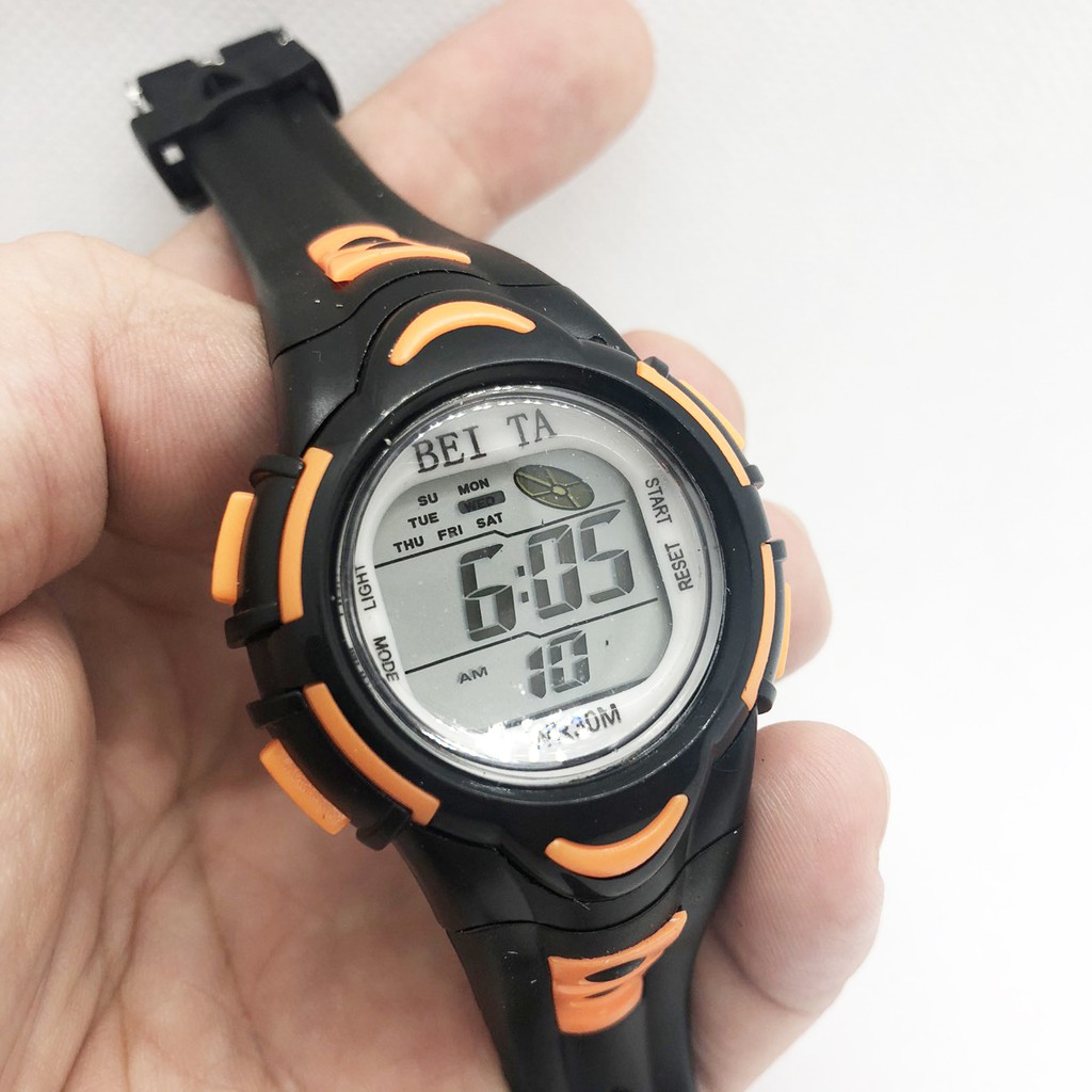 Đồng hồ điện tử thể thao trẻ em Beita dây vỏ cao su mặt tròn size 36mm đa chức năng, đèn led nhiều màu chống nước BT02