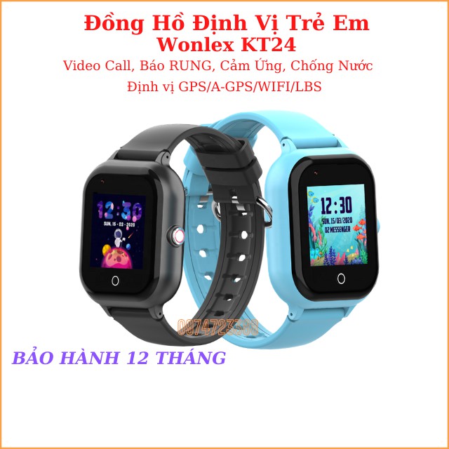 Đồng Hồ Định Vị Trẻ Em Chống Nước Wonlex KT24 KT24S Chính Hãng, Màn Hình Cảm Ứng, Có RUNG, 4G Video Call, Camera chụp ảnh từ xa.-------------