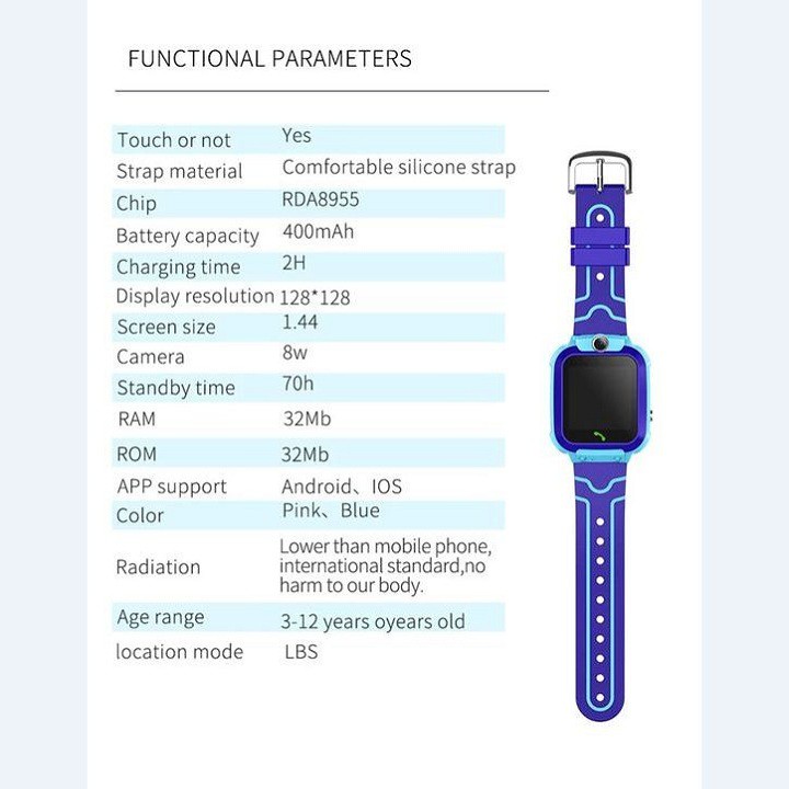 Đồng Hồ Định Vị Trẻ Em, Đồng Hồ Lắp Sim, Nghe Gọi Chống Nước Phần Mềm Tiếng ViệtTính năng nổi trội: Có SIM, Dùng cho trẻ em, Trả lời cuộc gọi, Định vị, Quay phim, chụp ảnh, Chống nước.
