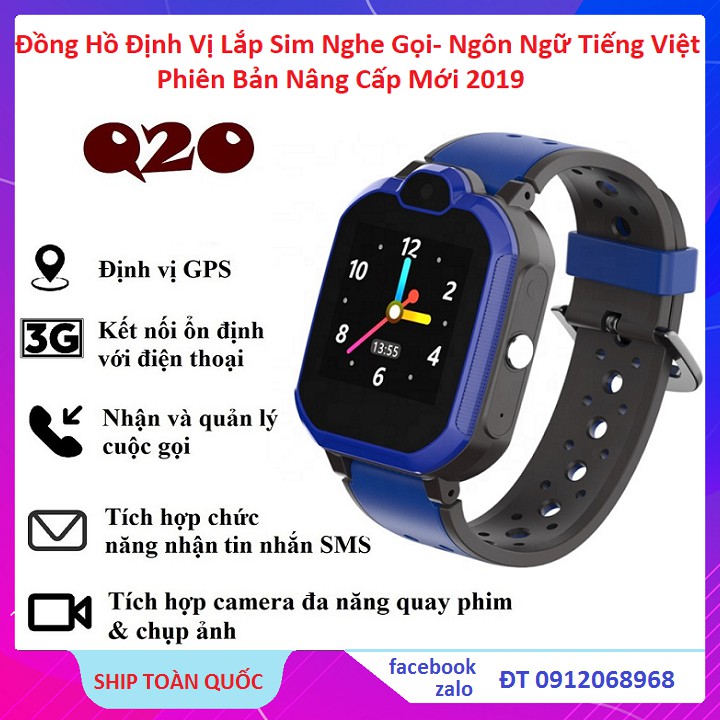 Đồng Hồ Định Vị Trẻ Em, Đồng Hồ Thông Minh Q20 Có Tiếng Việt Chụp Ảnh Camera HD Có Model 2019