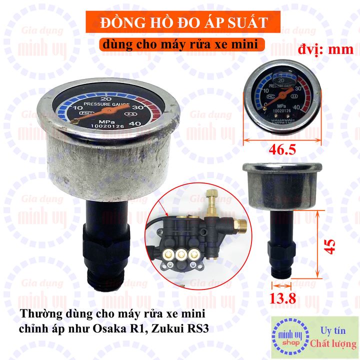 Đồng hồ đo áp lực máy rửa xe mini sẽ cho phép người dùng biết được áp lực phun xịt là bao nhiêu để từ đó điều chỉnh cho thật hợp lý. Theo thời gian, sẽ có lúc đồng hồ máy phun áp lực bị hỏng và khi đó, chúng ta cần thay thế bằng 1 chiếc đồng hồ mới để đảm bảo công việc được thực hiện một cách dễ dàng, tiện lợi và cũng là để bảo vệ cho máy rửa xe