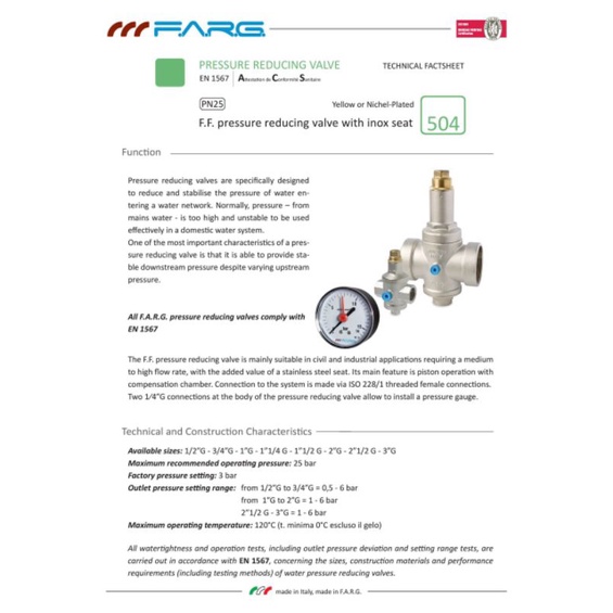 Đồng hồ đo áp suất nước FARG được nhập khẩu chính thức từ Italy , đồng hồ đo áp suất 10kg và 16 kg hiệu FARG là dòng sản phẩm chất lượng tốt được sản xuất theo công nghệ và tiêu chuẩn Italy. Đồng hồ đo áp suất hiệu FARG loại chân đứng được ứng dụng chủ yếu để đo áp suất môi chất lỏng và đo áp suất khí trong thiết bị hoặc đường ống dẫn, chịu được nhiệt độ cao và chống sự ăn mòn của môi chất rất tốt.