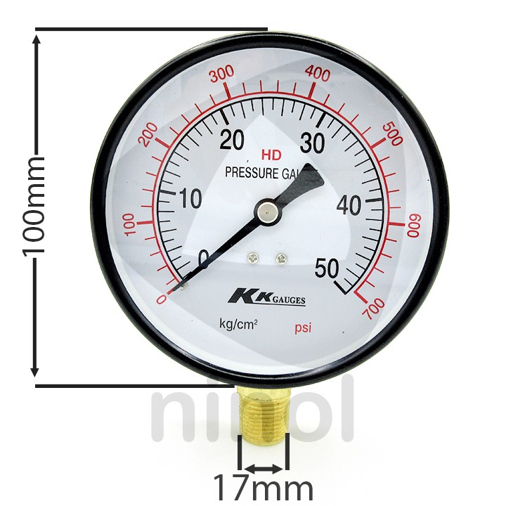 - Dãy đo: Là thông số hiển thị trên mặt đồng hồ. Ví dụ: Đồng hồ 5Kg có dãy đo từ 0-5 kgf/cm2