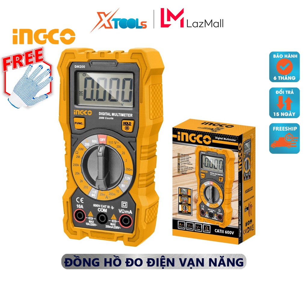 Nhà cửa & Đời sống > Dụng cụ & Thiết bị tiện ích > Dụng cụ > Dụng cụ đo lường || Đồng hồ đo điện vạn năng INGCO DM2002 | Đồng hồ vạn năng Màn hình LCD 2000 số đếm Chỉ thị số DCV 200mV/2V/20V/200V/600VCòn hàng