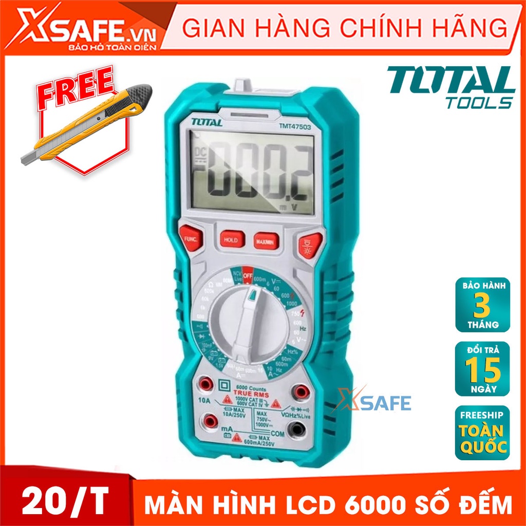 Nhà cửa & Đời sống > Dụng cụ & Thiết bị tiện ích > Dụng cụ > Dụng cụ đo lường || Đồng hồ đo điện vạn năng TOTAL TMT47503 Thiết bị đo điện cầm tay màn hình LCD 6000 số đếm, có đèn nền, đèn chiếu sángCòn hàng