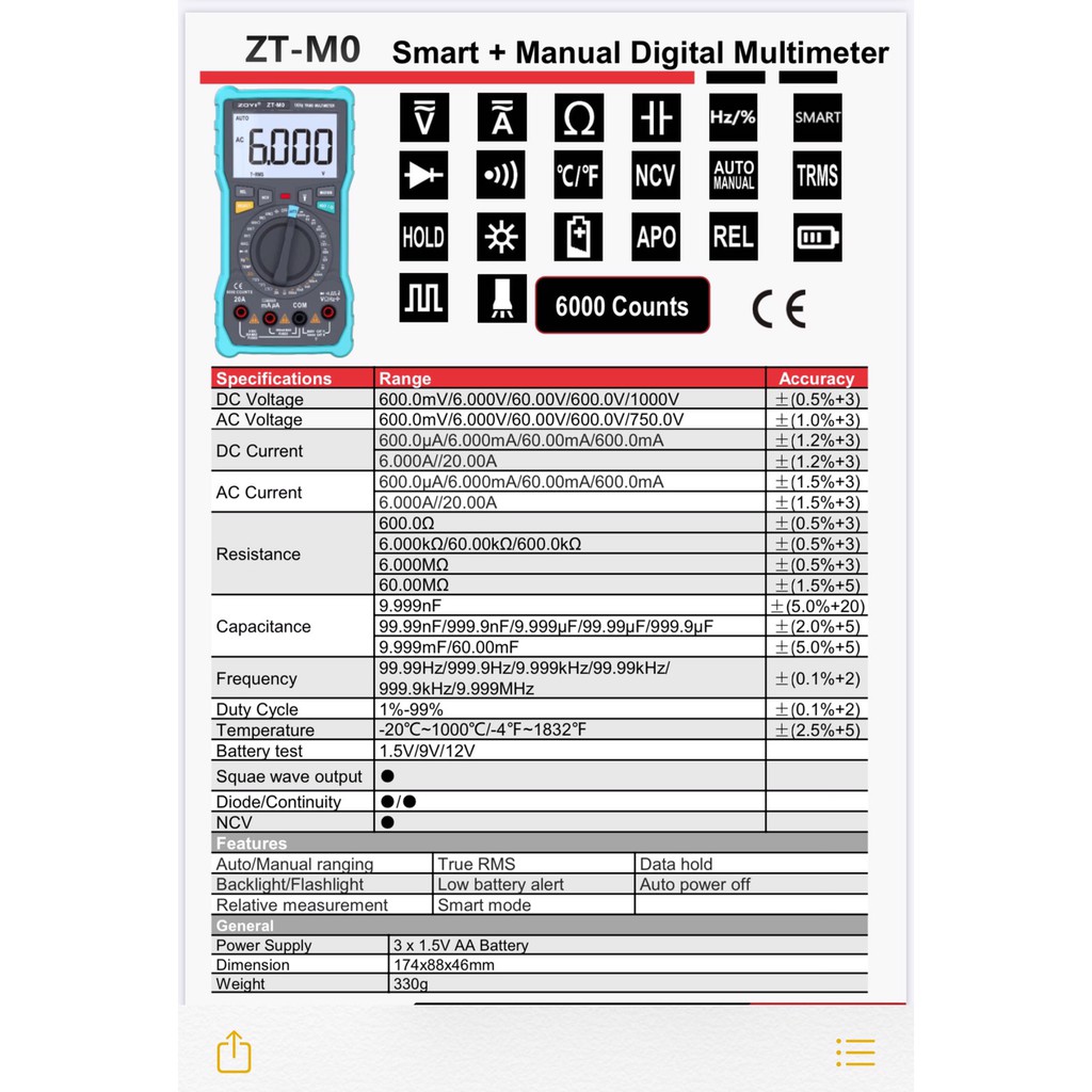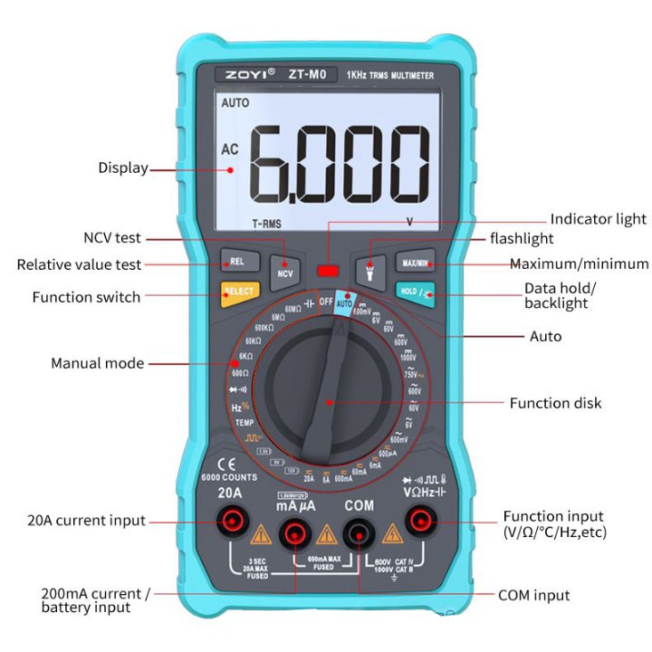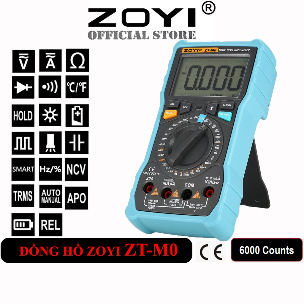 ĐỒNG HỒ ĐO ĐIỆN VẠN NĂNG ZOYI ZT-M0 ĐO ĐIỆN CHUYÊN NGHIỆP - HÀNG CHÍNH HÃNG - BẢO HÀNH 12 THÁNGTHÔNG SỐ KỸ THUẬT: Đồng Hồ Đo Điện Vạn Năng Zoyi Zt-M0 Đo Điện Chuyên Nghiệp