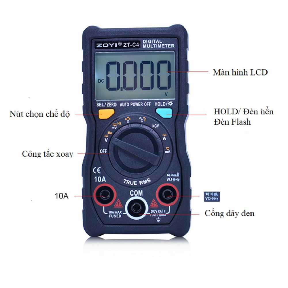 Đồng Hồ Đo Điện Vạn Năng Zoyi Zt-C4 Đo Điện Đa Năng Điện Dung, Nhiệt Độ - Hàng Chính Hãng - Bảo Hành 12 Tháng