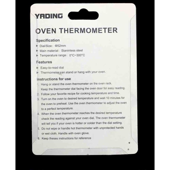 Công dụng: đo nhiệt độ lò nướng từ 50 - 300 Độ