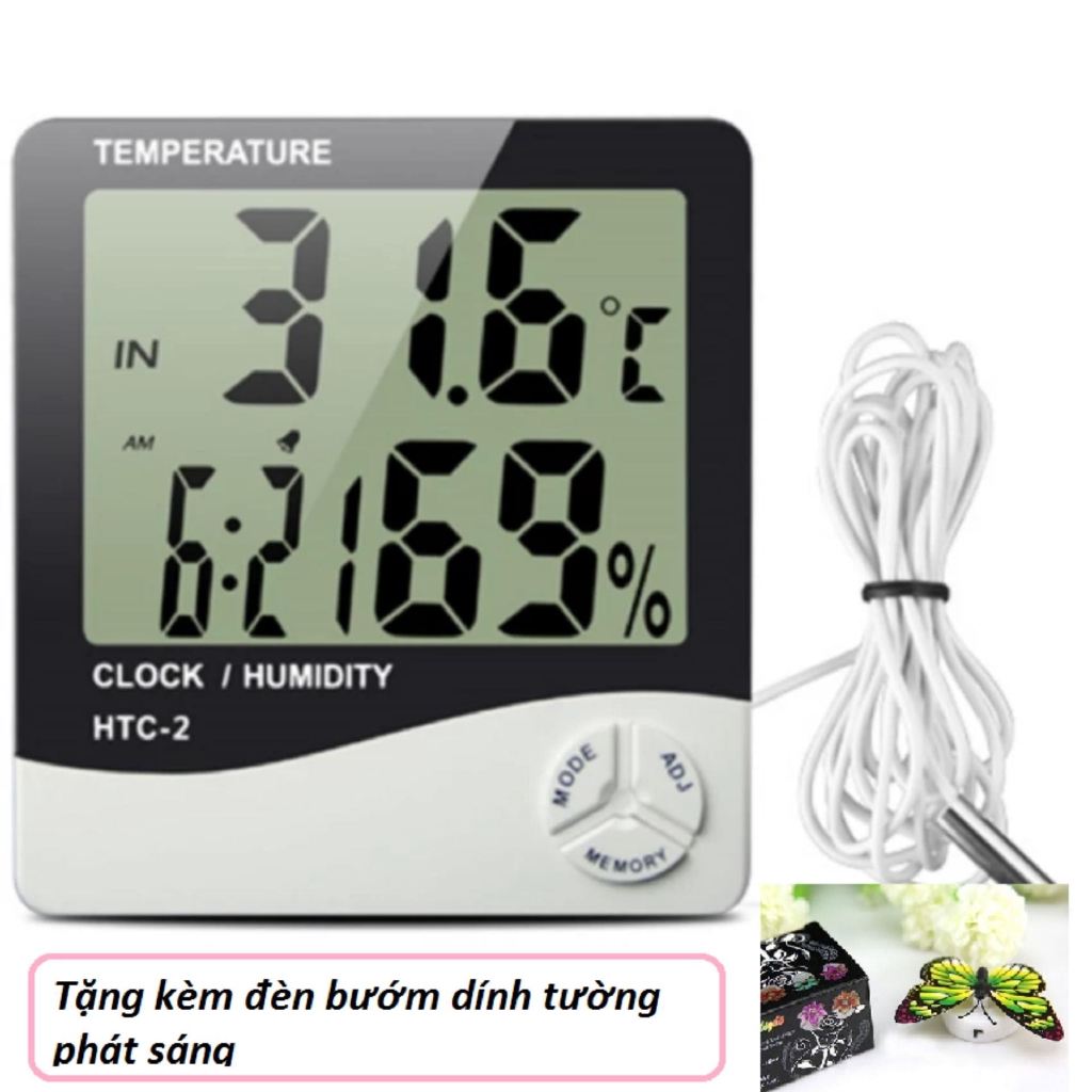 💥 Tên sản phẩm: Đồng hồ đo nhiệt độ và độ ẩm HTC-2 tặng kèm đèn bướm dính tường phát sáng -dc1183+dc2307