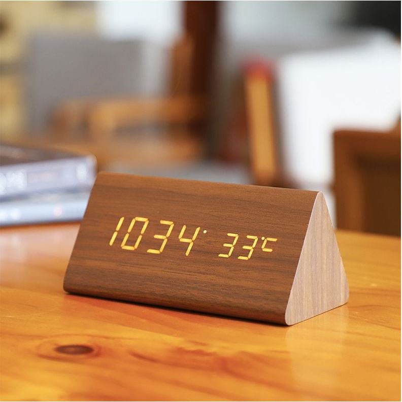 Nhà cửa & Đời sống > Trang trí nhà cửa > Đồng hồ || Đồng hồ giả gỗ TEWTER LED hình tam giác để bàn tiện dụng, thông minh trang trí phòng hiện đại.Còn hàng