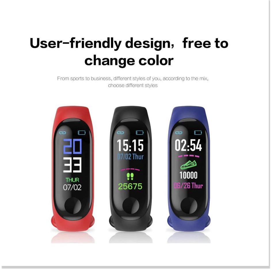 Đồng hồ GIÁ VỐN] Vòng tay thông minh M3 hỗ trợ báo rung khi có cuộc gọi, theo dõi sức khỏe, hiển thị giờ,.. 7016