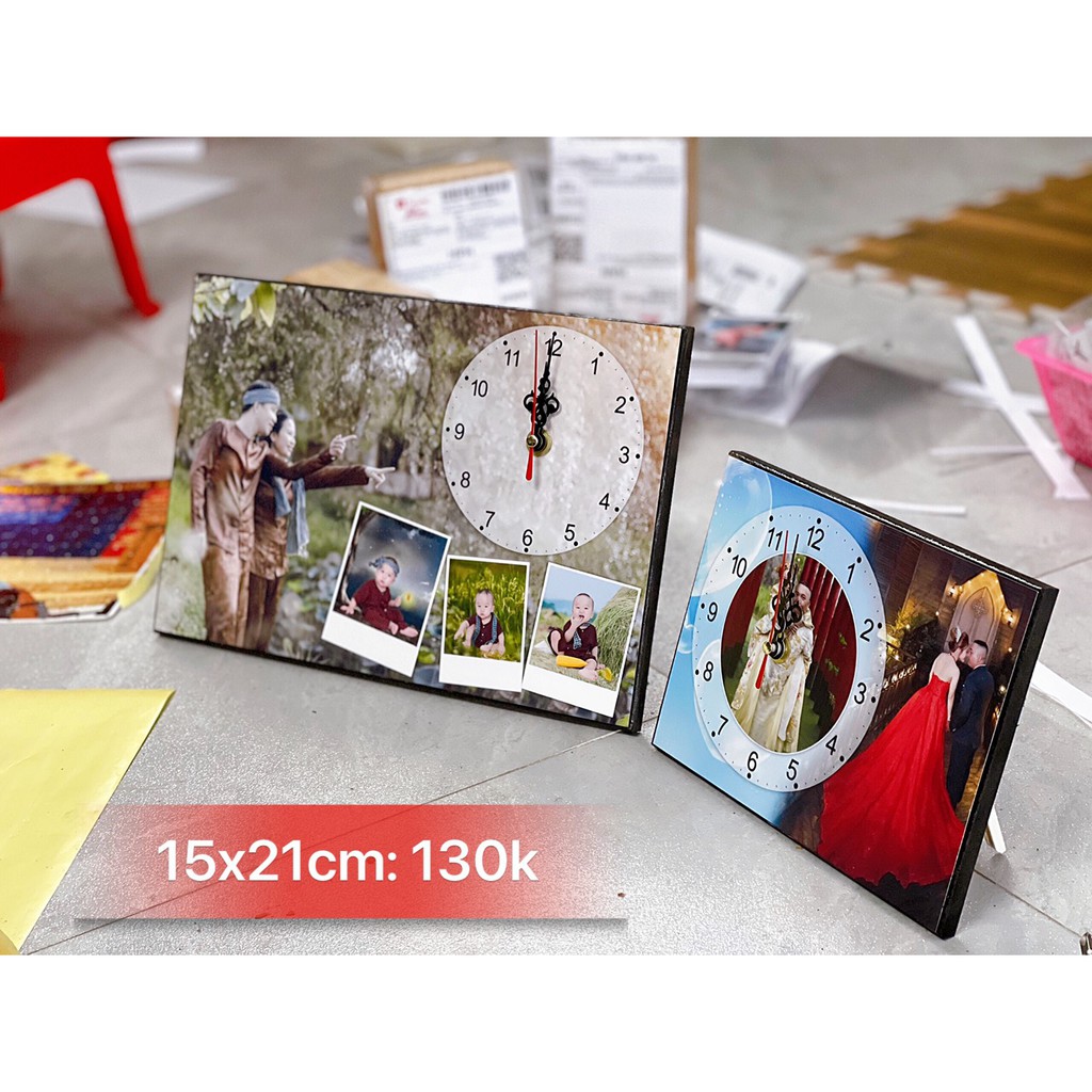 Đồng hồ gỗ để bàn in ảnh theo yêu cầu