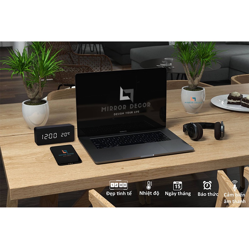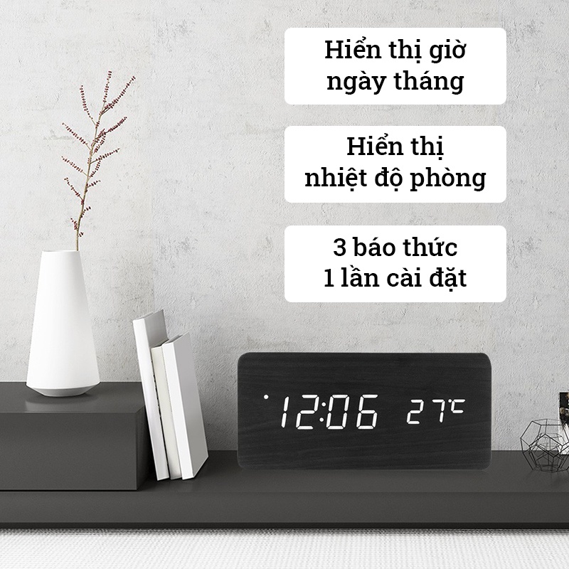 Giới thiệu [Mã LIFEHL50K giảm 10% tối đa 50K đơn 200K] Đồng hồ gỗ, đồng hồ led để bàn chữ nhật