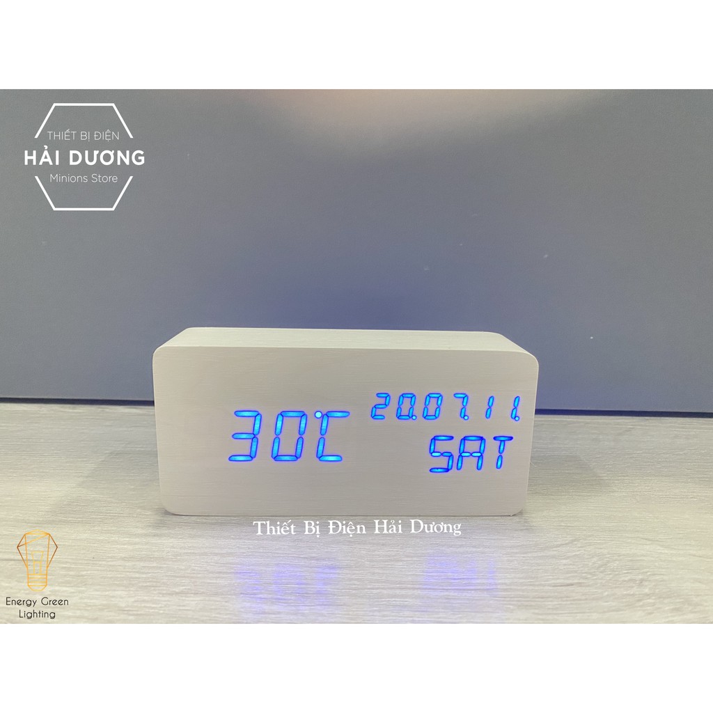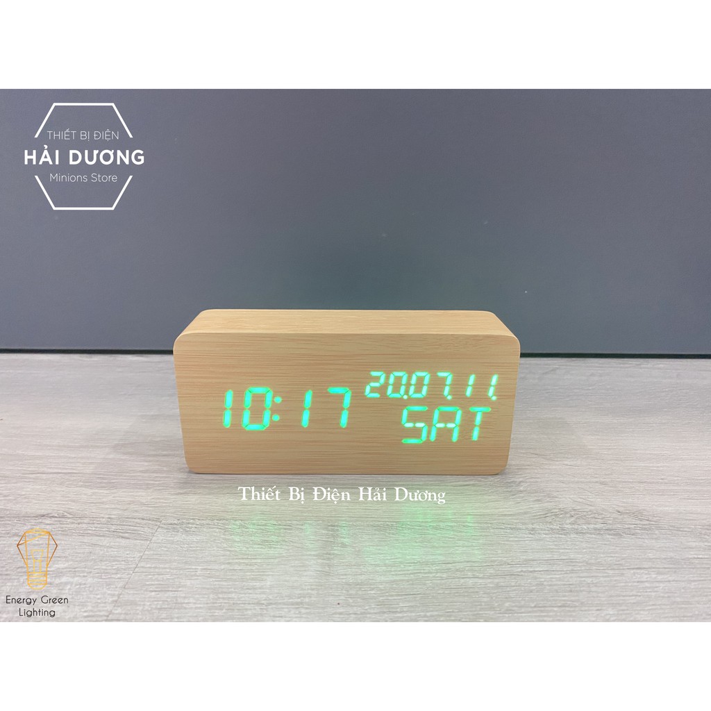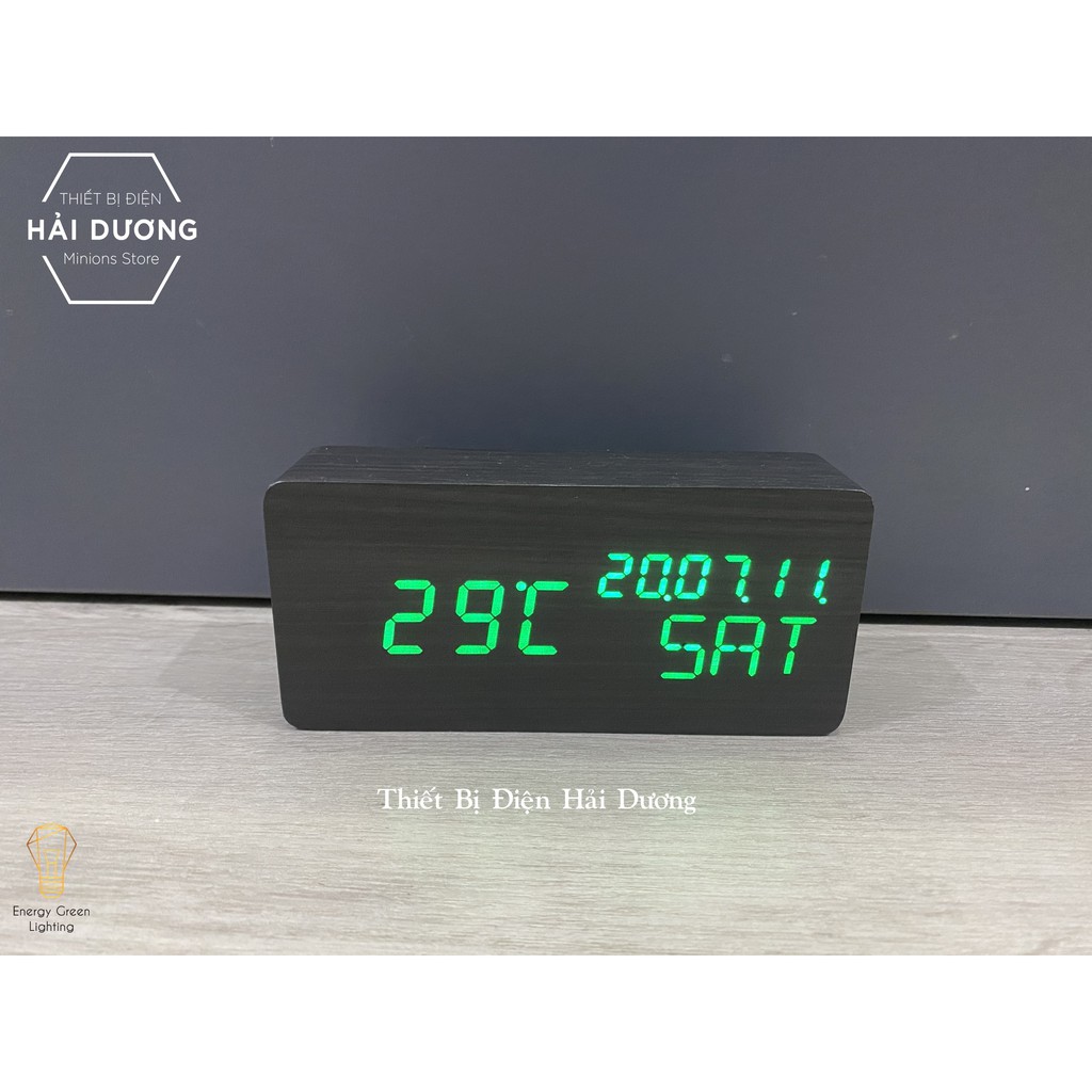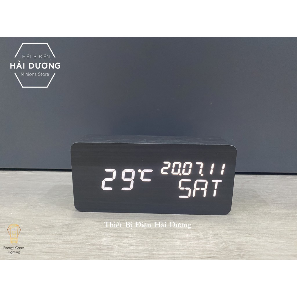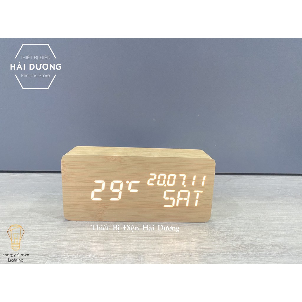 Đồng Hồ Gỗ Led Để Bàn Hình Chữ Nhật DH-92 Hiển Thị Ngày Tháng Nhiệt Độ Cùng Lúc - Báo Thức - Tặng pin - BH 18 Tháng