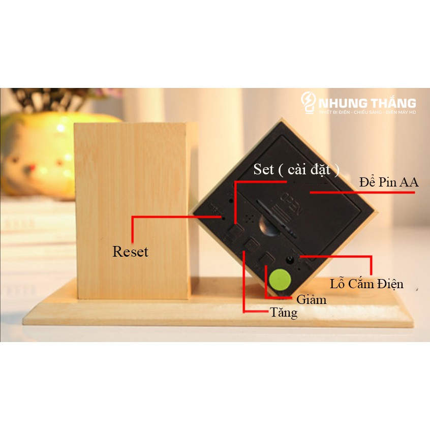 Giới thiệu Đồng Hồ Gỗ Led Để Bàn Hình Vuông Chéo DH-95 - Kiêm Ống Đựng Bút - 4 Màu Thanh Lịch - Trang trí decor vintage Căn Phòng