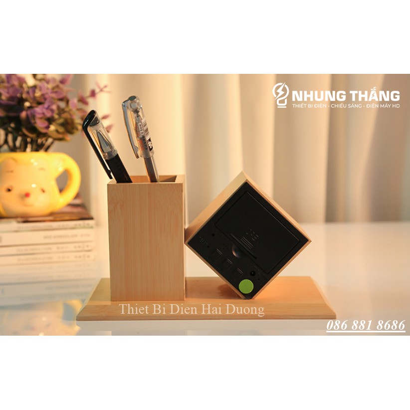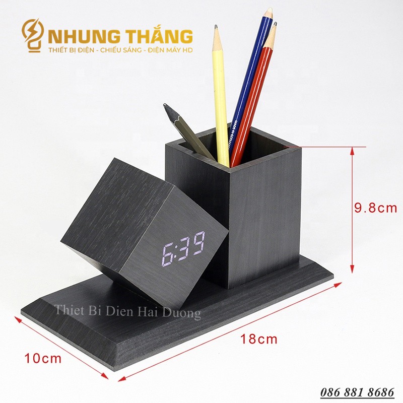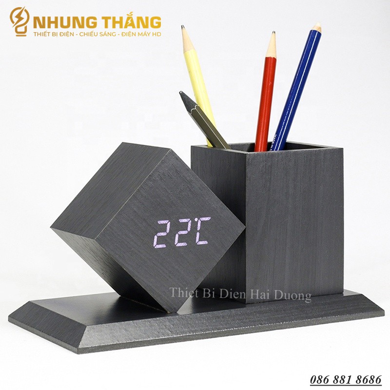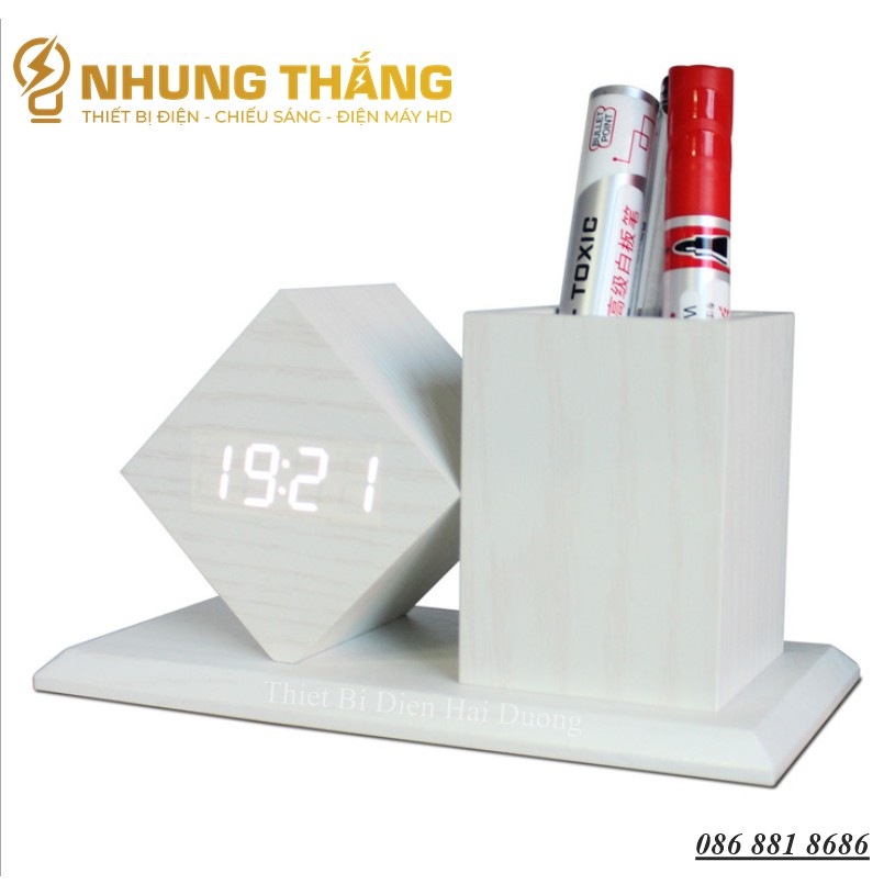 Đồng Hồ Gỗ Led Để Bàn Hình Vuông Chéo DH-95 - Kiêm Ống Đựng Bút - 4 Màu Thanh Lịch - Trang trí decor vintage Căn Phòng