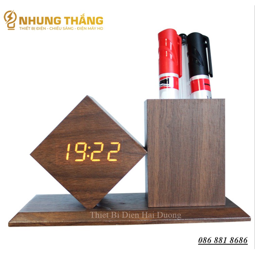 Nhà cửa & Đời sống > Trang trí nhà cửa > Đồng hồ || Đồng Hồ Gỗ Led Để Bàn Hình Vuông Chéo DH-95 - Kiêm Ống Đựng Bút - 4 Màu Thanh Lịch - Trang trí decor vintage Căn PhòngCòn hàng